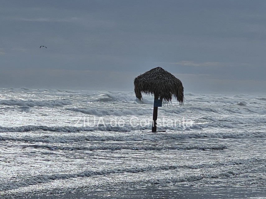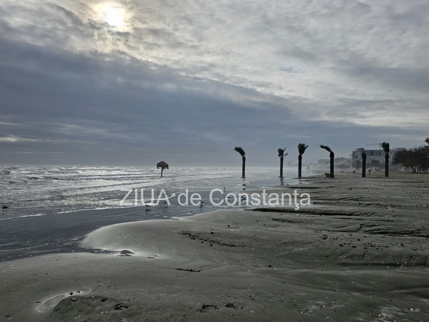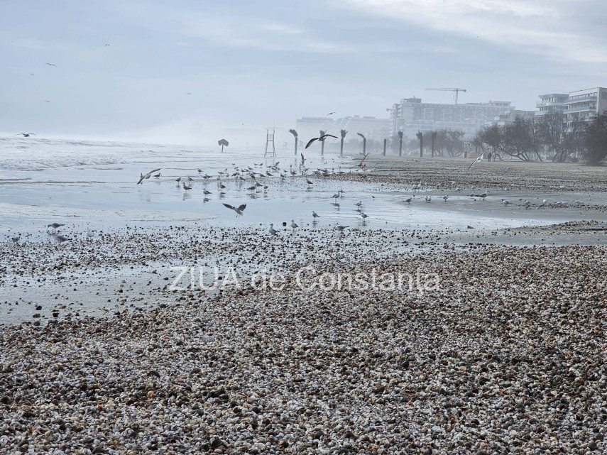 FOTO+VIDEO Plaja din Mamaia Nord, acoperită de scoici mari. Marea a înghițit o porțiune din mal
