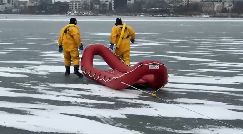 FOTO+VIDEO: Salvamarii se antrenează pe Lacul Tăbăcăriei din Constanța pentru intervenții în caz de pericol