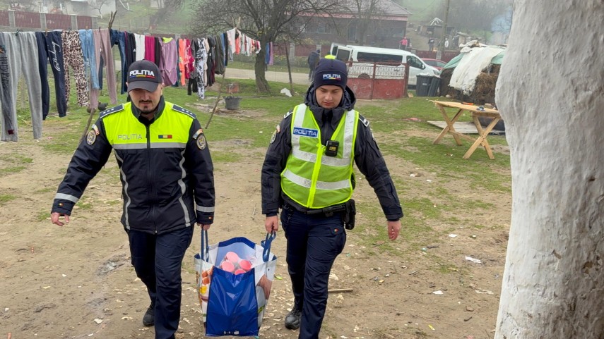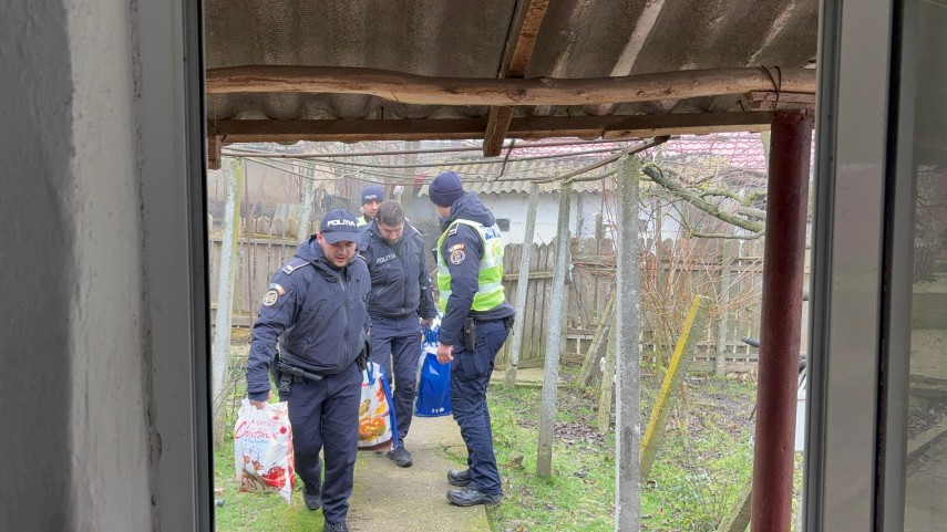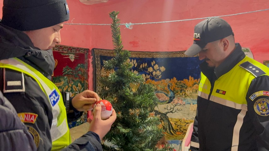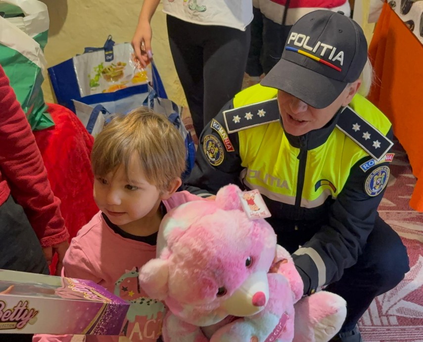 FOTO+VIDEO Șase frați din Lipnița și o bătrână cu ochii plini de lacrimi au simțit magia Crăciunului datorită polițiștilor constănțeni