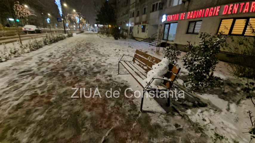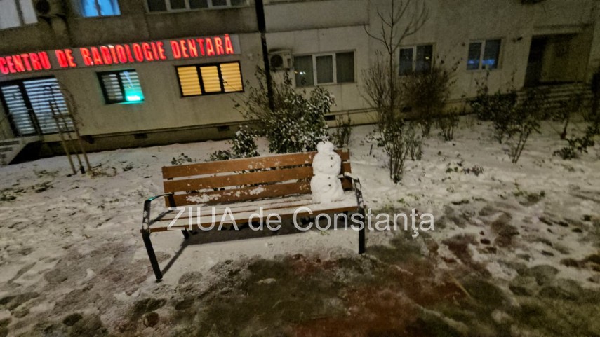 FOTO-VIDEO. Spiritul iernii, surprins pe o bancă din Constanța