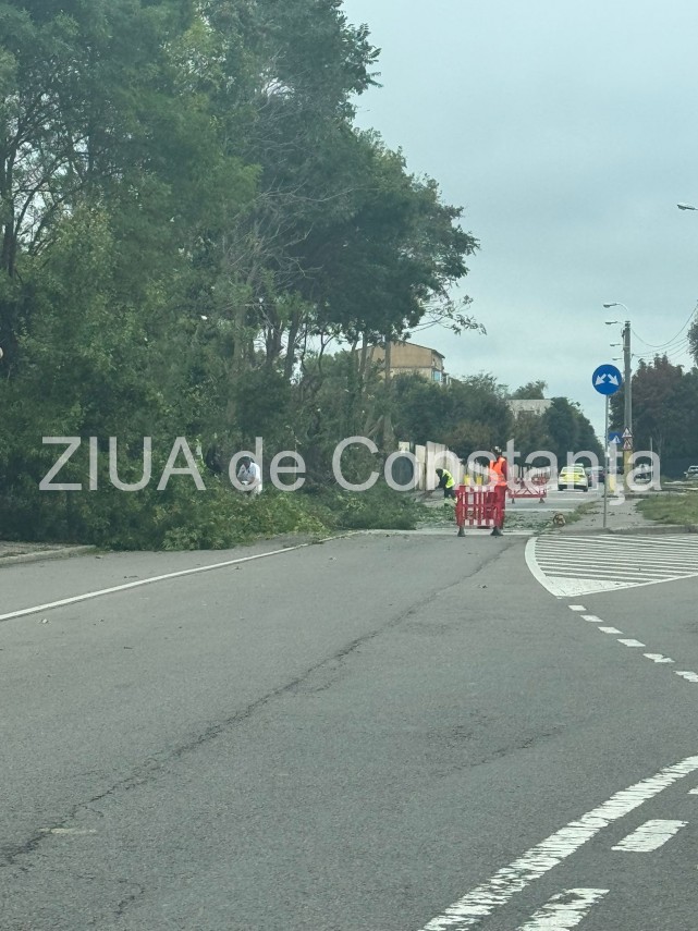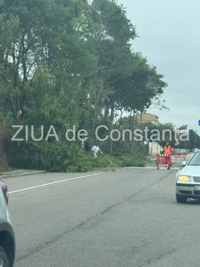 FOTO-VIDEO. Stradă din zona cimitirului de pe strada I.L.Caragiale din Constanața, blocată din cauza lucrărilor de toaletare