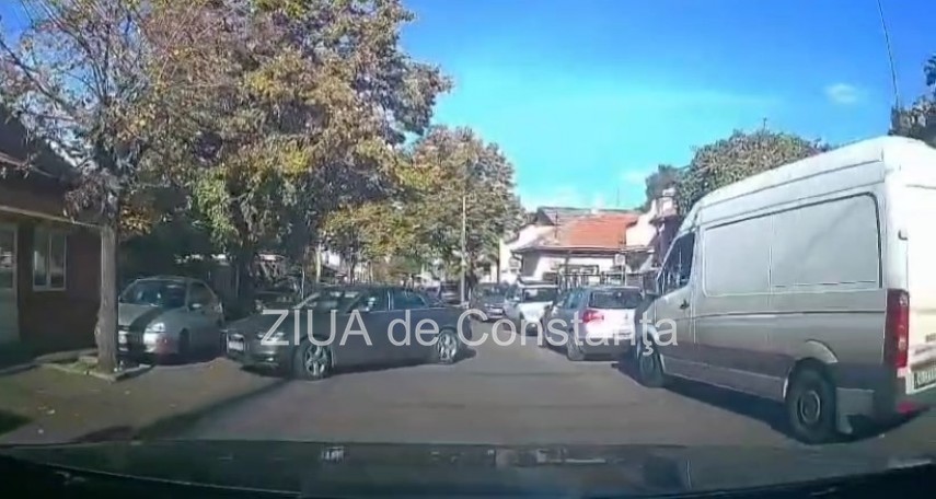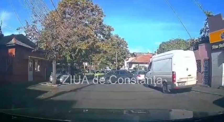 FOTO+VIDEO Un autoturism lăsat neasigurat a avariat o mașină pe strada Poporului din Constanța