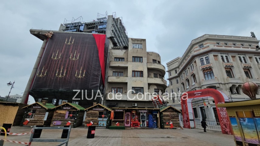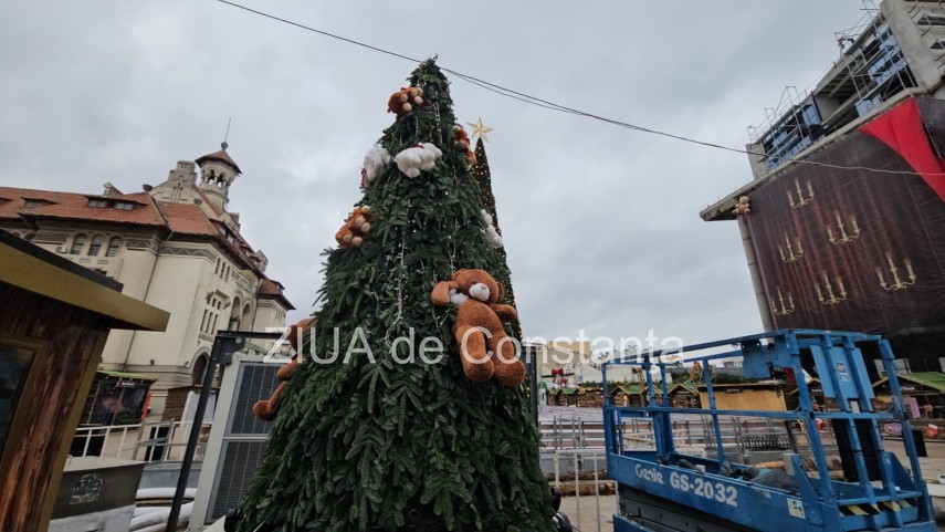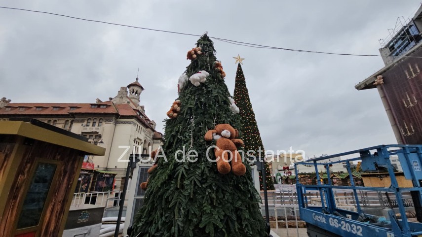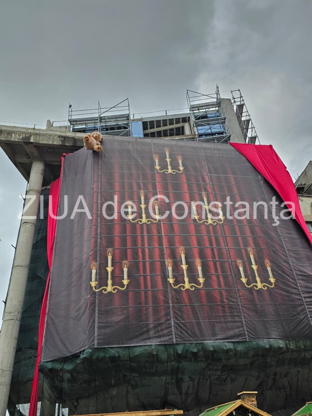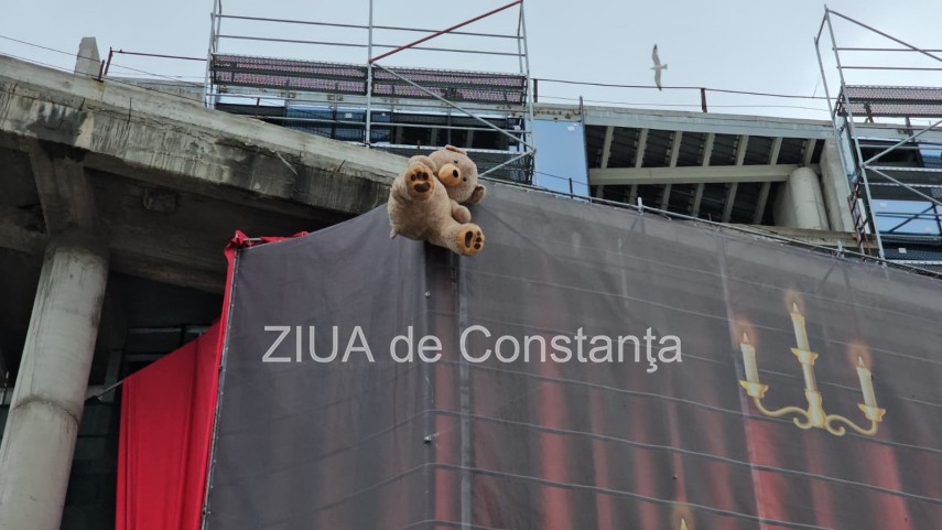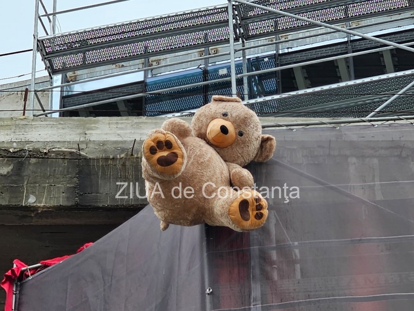 FOTO+VIDEO Ursuleții de pluș, dați jos de pe clădirea din Piața Ovidiu din Constanța!