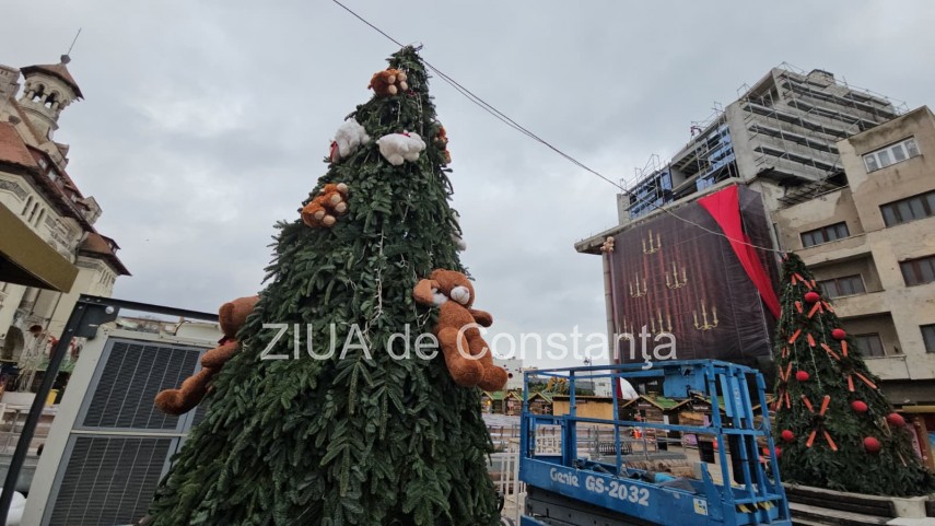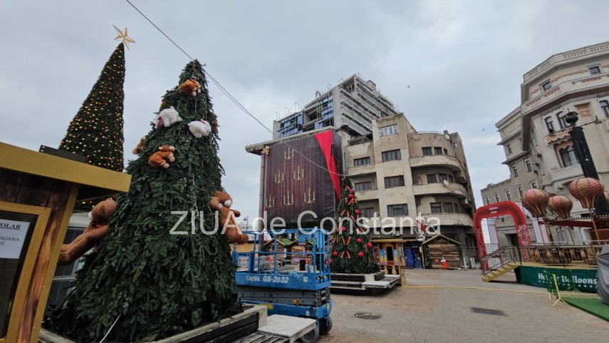 FOTO+VIDEO: Ursuleții de pluș, dați jos de pe clădirea din Piața Ovidiu din Constanța!