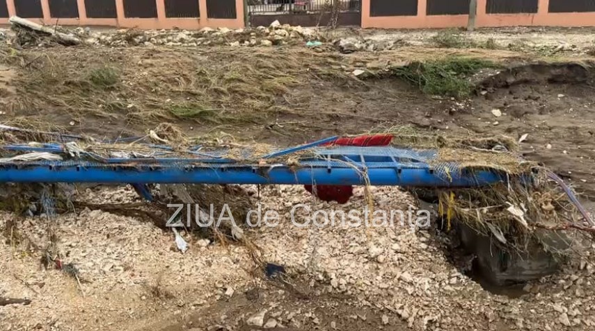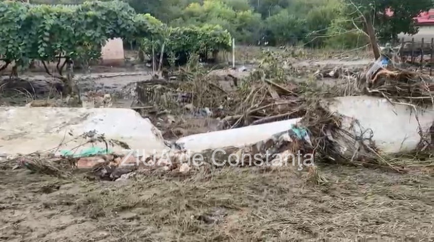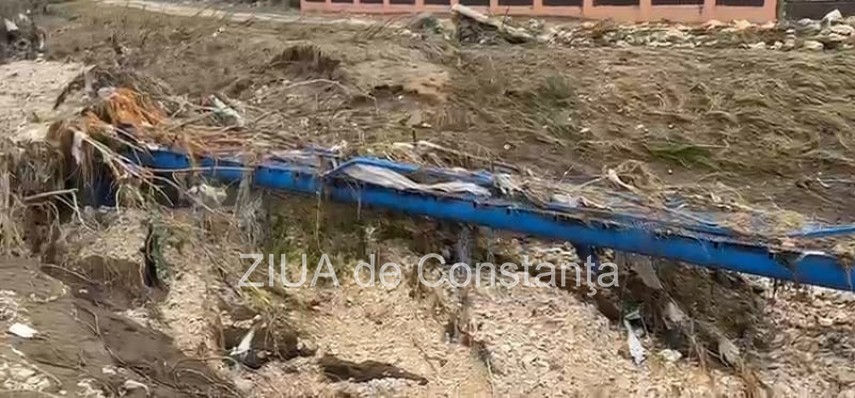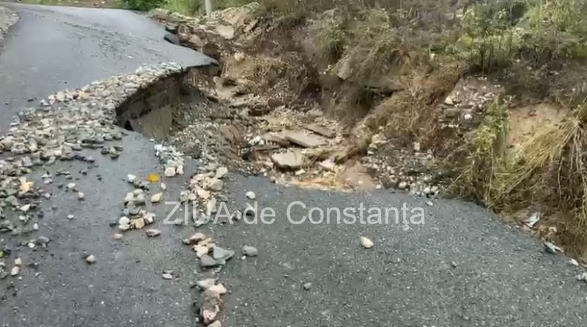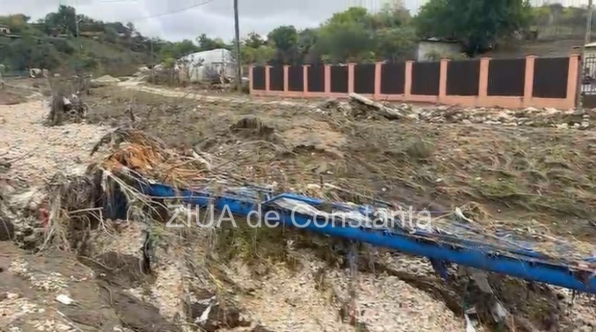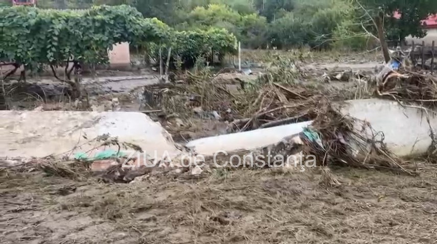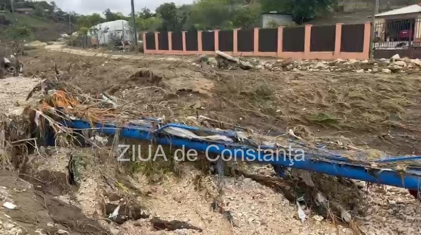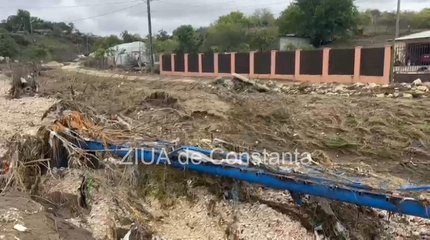 FOTO-VIDEO. Viitura a distrus un poduleț și mai multe străzi s-au inundat în Topalu, județul Constanța