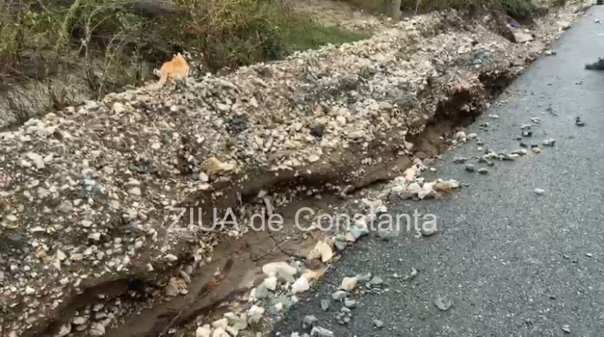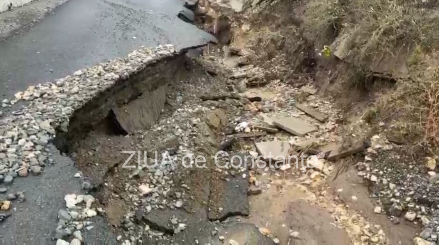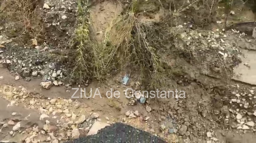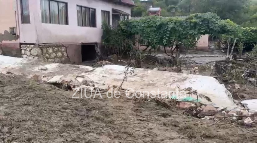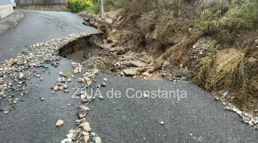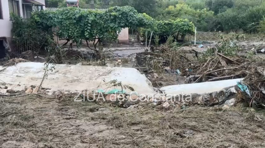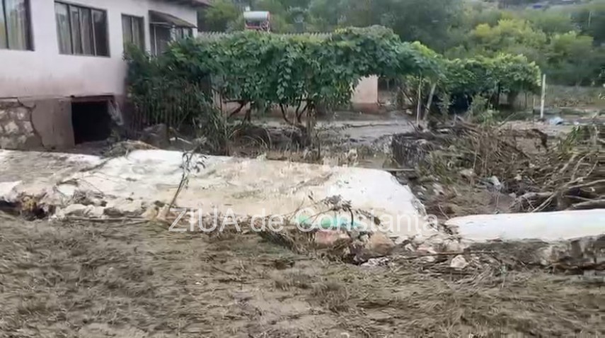 FOTO-VIDEO. Viitura a distrus un poduleț și mai multe străzi s-au inundat în Topalu, județul Constanța