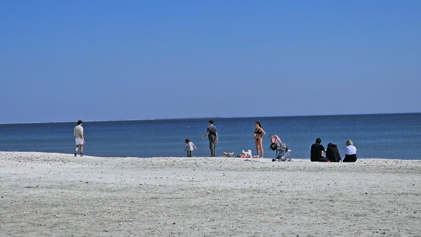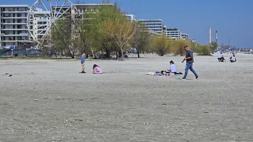 FOTO+VIDEO Vremea frumoasă i-a scos pe turiști și constănțeni pe plajă la Modern și Năvodari. Curajoșii au încercat și o baie în mare