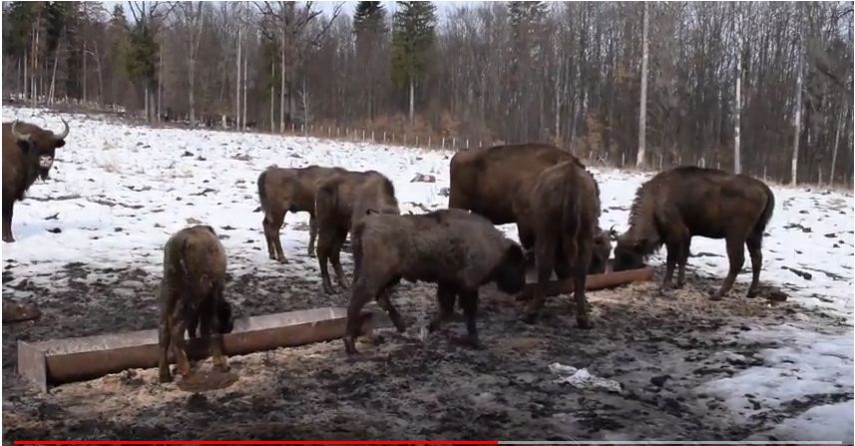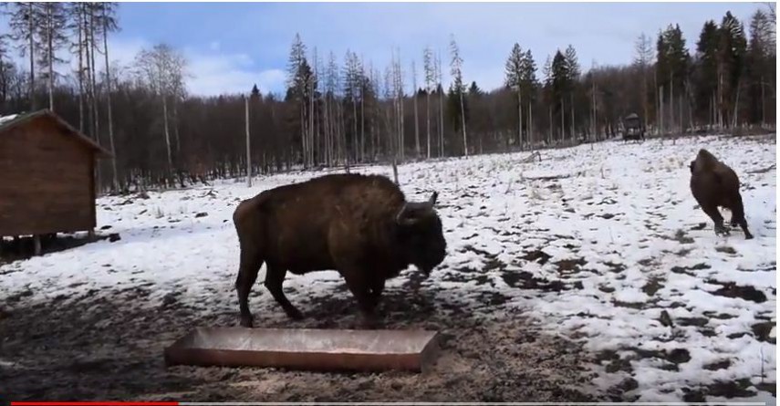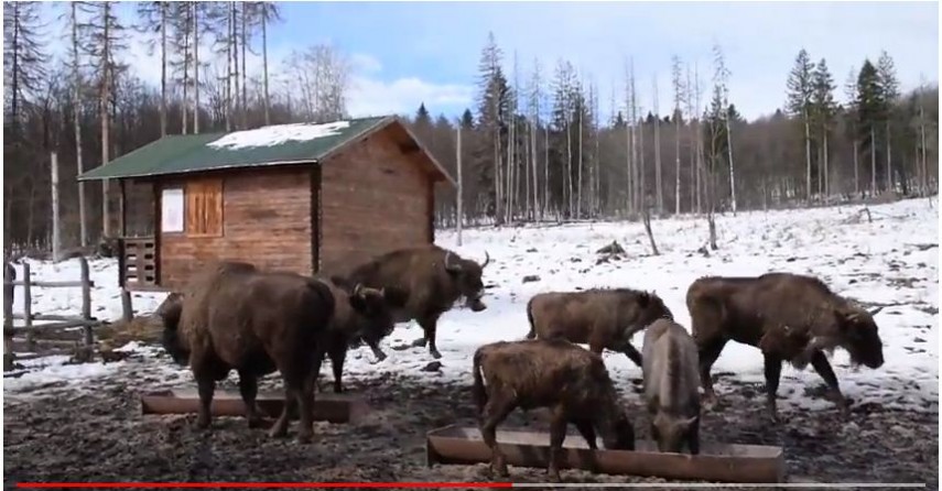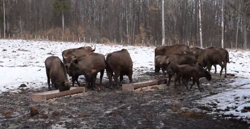 Fotografii din România. Zimbri, pui și adulți, la un punct special de hrănire din pădure (galerie foto+video)
