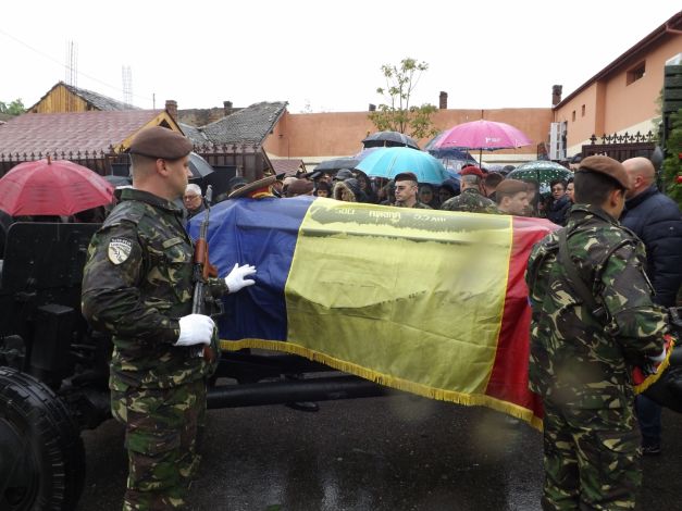 Potrivit aceleiaşi surse efectivele din garda de la sicriu au purtat ţinuta specifică misiunilor din Afganistan, iar pe mâneca stângă, deasupra cotului, banderola de doliu.