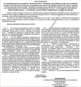 Guvernul României a adoptat hotărârea de guvern pentru modificarea şi completarea anexei nr. 2 la Hotărârea Guvernului nr. 23/2020 privind declanşarea procedurilor de expropriere a imobilelor proprietate privată care constituie coridorul de expropriere al lucrării de utilitate publică de interes naţional ,,Infrastructura Bazei 57 Aeriană din cazarma 888 Mihail Kogălniceanu", precum şi suplimentarea sumei aferente despăgubirilor, aprobată prin Hotărârea Guvernului nr. 23/2020.Astfel, guvernul a suplimentat cu peste 154.000 lei suma prevăzută ca despăgubire pentru imobilele proprietate privată din coridorul de expropriere al obiectivului de investiții „Infrastructura Bazei 57 Aeriană din cazarma 888 Mihail Kogălniceanu”.