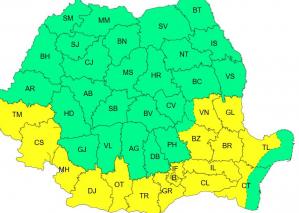 Administrația Națională de Meteorologie a emis o atenționare meteorologică de tip cod galben valabilă astăzi, până la ora 18.00.