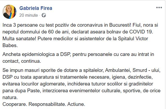 Sursa captura: Facebook/ Gabriela Firea