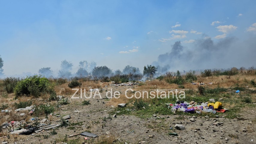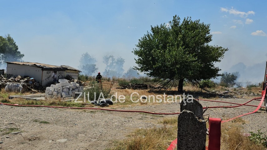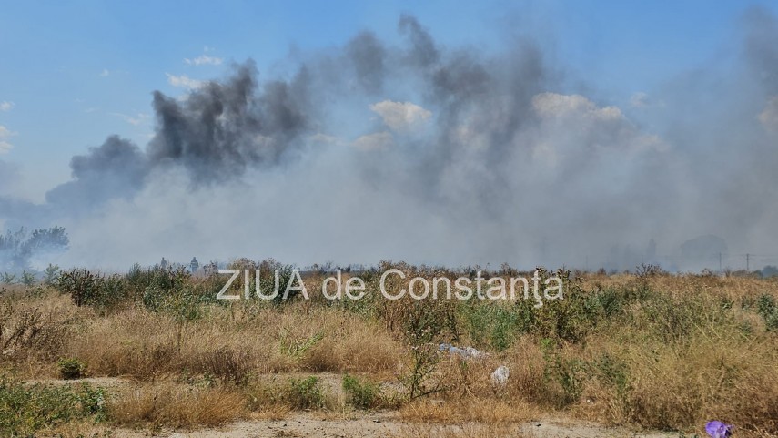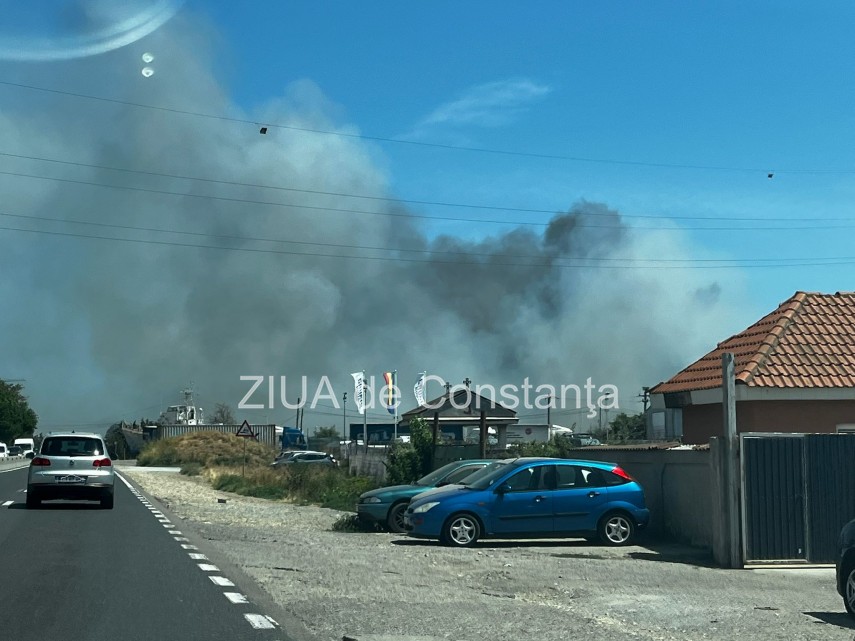 UPDATE: Incendiu la intrare în municipiul Constanța, zona Industrială! Vizibilitate redusă, în zonă (GALERIE