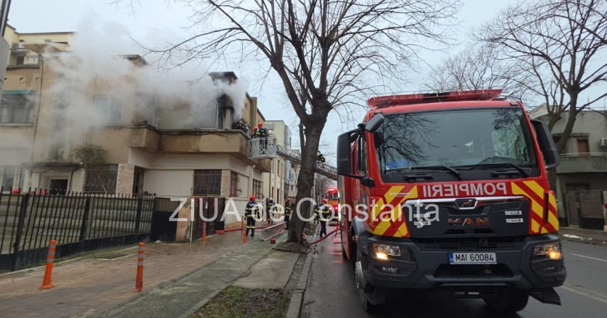 LIVE VIDEO+FOTO: Incendiu la o casă de pe bulevardul Ferdinand din Constanța! Intervin mai multe echipaje de