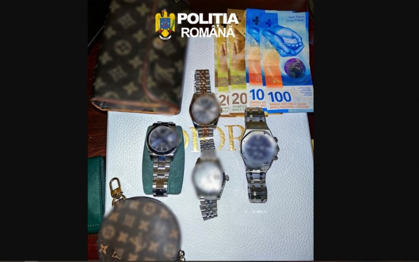 PRECIZĂRI:În urma efectuării controlului corporal și al bagajelor au fost descoperite 4 ceasuri cu valoare ridicată, bijuterii din aur și accesorii produse de mărci consacrate a căror proveniență nu a putut fi justificată.