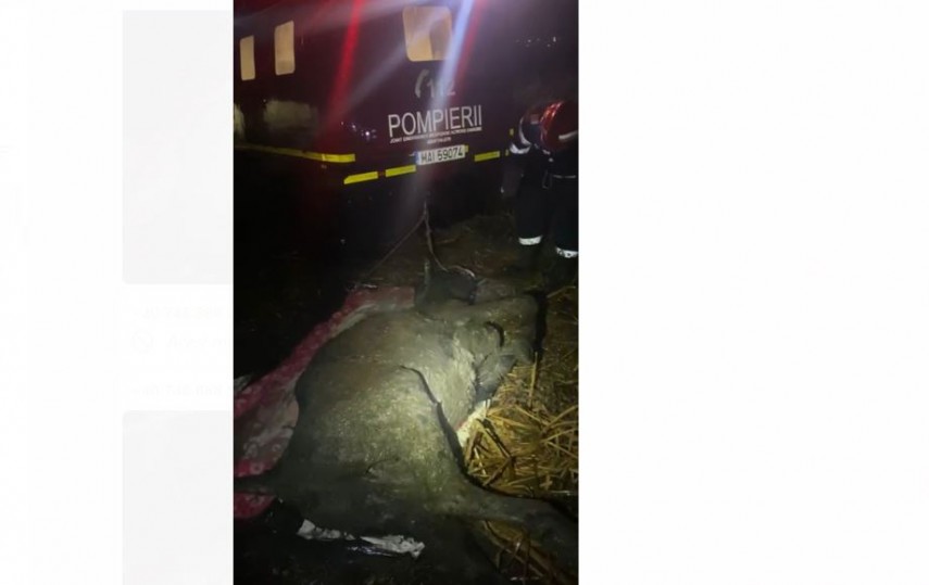 Potrivit sursei citate, după aproximativ 3 ore, bovina a fost scoasă la suprafață în siguranță și predată proprietarului.