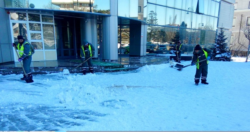 Angajații societății de salubrizare din cadrul Primăriei Constanța degajează zăpada din stațiile de autobuz, trecerile de pietoni, trotuare, pasaje și de pe scările de acces către acestea.