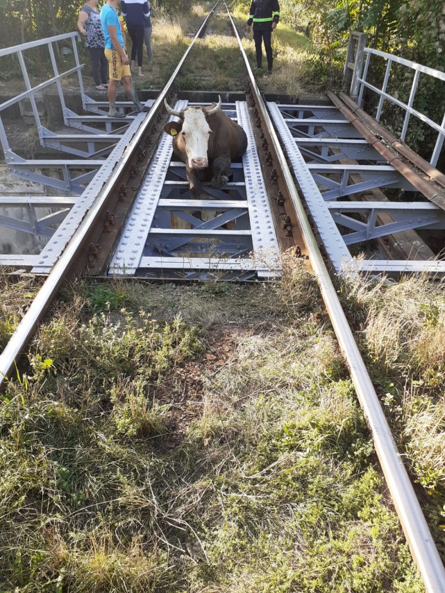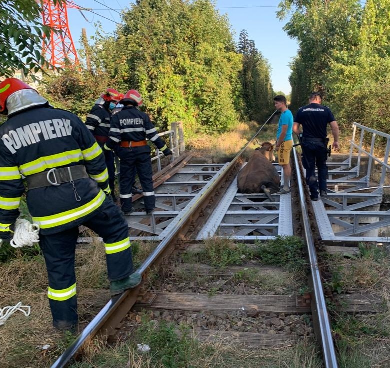 ISU Neamț. Misiune de salvare a unei bovine blocate pe linia CFR (galerie foto)