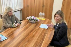 Prima Doamnă a Statelor Unite ale Americii, Jill Biden, şi soţia preşedintelui României, Carmen Iohannis, au ajuns, sâmbătă, 7 mai, la Şcoala Gimnazială „Uruguay" din Sectorul 1 al Capitalei, care găzduieşte elevi ucraineni refugiaţi.