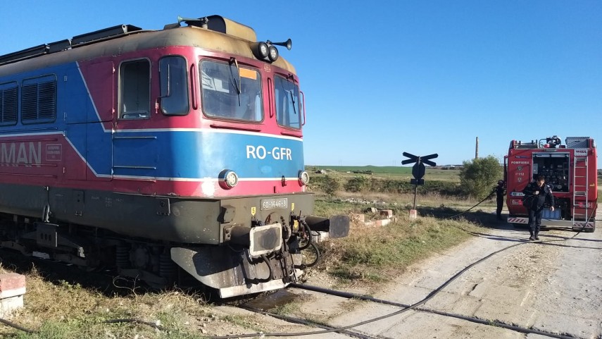 UPDATE Județul Constanța Incendiu la o locomotivă, între Halta Dorobanțu și Nazarcea (foto+video)