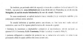 Totodată, Prefectura Constanța a anunțat că de aseară, de la ora 20.00, încetat măsura de carantină zonală, pentru U.A.T. Lumina, U.A.T. Mihail Kogălniceanu și U.A.T. Valu lui Traian,.