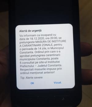 - Prefectura Constanța a anunțat că de aseară, de la ora 20.00, încetat măsura de carantină zonală, pentru U.A.T. Lumina, U.A.T. Mihail Kogălniceanu și U.A.T. Valu lui Traian