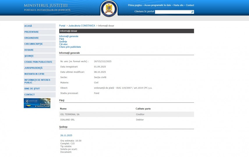 Justiție Constanța: Dispută juridică între Oil Terminal SA și Dialand SRL! Când va avea loc primul termen