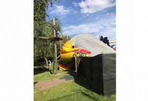 La un pas de o tragedie de Ziua Copilului. Un tobogan răsturnat de o rafală de vânt în Oradea