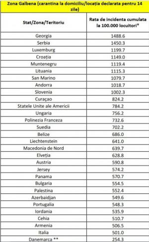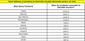 Lista statelor din zona galbenă a fost actualizată Se instituie măsura carantinei asupra persoanelor care sosesc în România din aceste țări