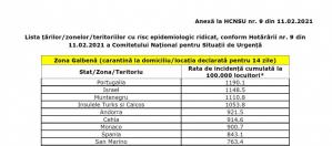 Prin această Hotărâre a fost aprobată noua listă cu țările/zonele/teritoriile de risc epidemiologic pentru care se instituie măsura carantinei asupra persoanelor care sosesc în România din acestea.