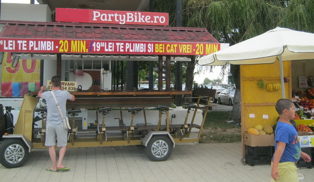 Ai nevoie de o activitate fantastică atunci când te afli în Mamaia sau vrei să faci ceva distractiv cu prietenii? Atunci, ar trebui să urci în Party Bike, unde bei bere rece şi pedalezi. Acest concept este originar din Amsterdam, dar este popular şi în Germania, Cehia, Ungaria, SUA şi Brazilia. Astfel, pentru 9 lei, te plimbi 20 de minute, iar pentru 19 lei, în cele 20 de minute de plimbare, bei câtă bere doreşti.