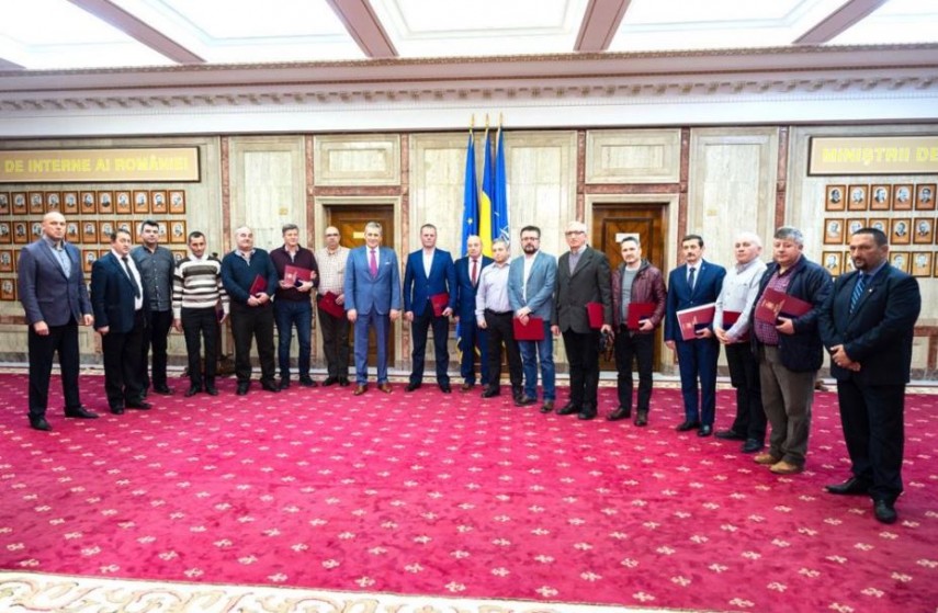 Marcel Vela, a acordat Emblema de Onoare a MAI supraviețuitorilor masacrului de la aeroportul Otopeni, din data