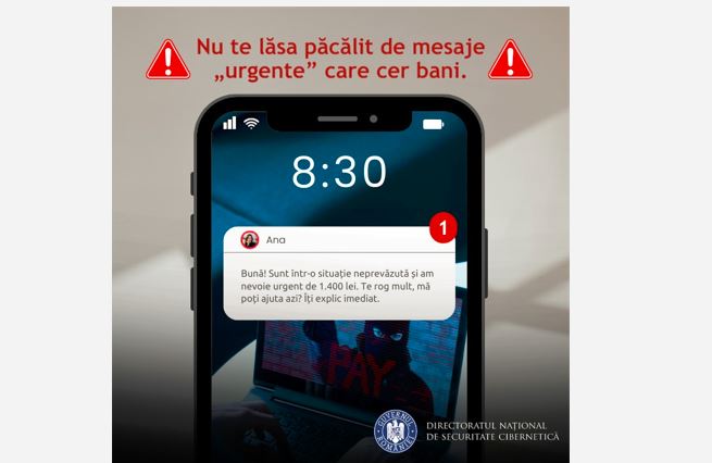 „Mesaj de la un prieten?”. DNSC avertizează asupra unei noi valuri de fraude prin metoda „Urgența”