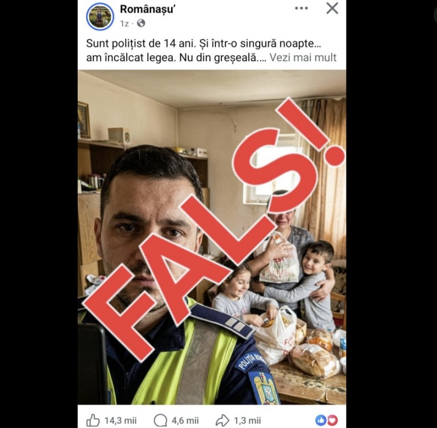 Ministerul Afacerilor Interne avertizează! Postările false cu „polițiști care ajută familii nevoiașe” urmăresc manipularea cetățenilor