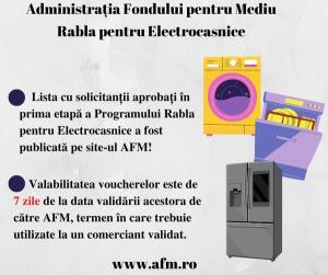 Ministerul Mediului anunță că bugetul de 15 milioane de lei alocat celei de-a treia etape a Programului Rabla pentru Electrocasnice a fost epuizat!Solicitanții persoane fizice au generat 49.412 de vouchere, astfel: