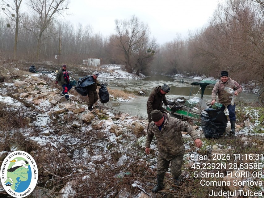 Mobilizare în RBDD: FOTO. Acțiuni de igienizare la temperaturi scăzute pentru protejarea habitatelor naturale