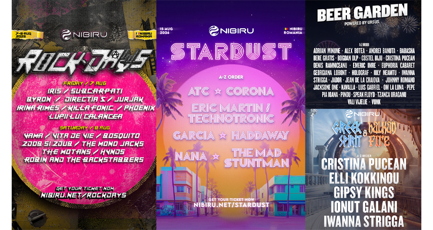 În paralel, scenele recurente - NEBULA X, NIBIRU CENTER STAGE și NIBIRU BEER GARDEN - asigură continuitatea experienței, cu artiști și show-uri live zilnic, construind un ritm constant pe toată durata sezonului. Odată cu aceste anunțuri, au fost deschise și vânzările de bilete pentru toate evenimentele din calendarul NIBIRU 2026, disponibile pe platforma oficială, www.nibiru.net., cu prețuri care pornesc de la 49 de lei.