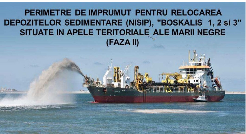 Firma Boskalis SRL va executa în perimetrele Boskalis 1, Boskalis 2, Boskalis 3, situate pe Platforma Continentală românească a Mării Negre, în zona economică exclusivă a României, lucrări de împrumut şi relocare a nisipului în vederea utilizării acestuia la reabilitarea plajelor, obiectiv cuprins în programul naţional „Asistenţă tehnică pentru pregătirea de proiecte, Axa Prioritară 5 - Reducerea eroziunii costiere, Faza II (2014 - 2020)“.
