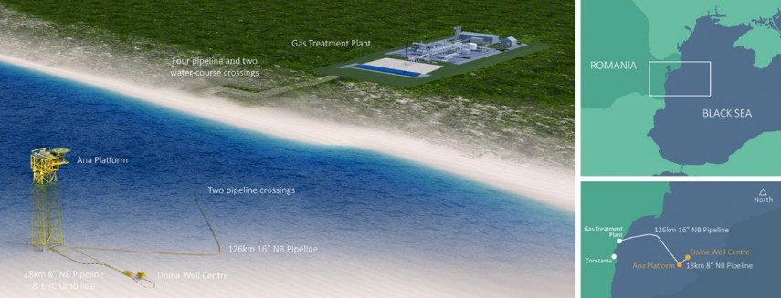 Proiectul MGD constă în săparea a cinci sonde de producţie (o sondă pe zăcământul Doina şi patru sonde pe zăcământul Ana), un ansamblu submarin de producţie pe zăcământul Doina care va fi conectat printr-o conductă de 18 km la platforma de producţie automatizată amplasată pe zăcământul Ana. O conductă submarină de 121 km va asigura transportul gazelor de la platforma Ana la ţărm, unde urmează 4,1 km de conductă subterană până la noua staţie de tratare a gazelor („STG”). Gazele tratate vor fi livrate prin staţia de măsurare a gazelor localizată în perimetrul STG către SNT operat de Transgaz. Se estimează că producţia de gaze va începe în trimestrul 1 al anului 2021.