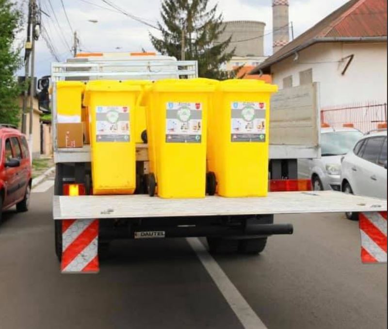 „Colectarea selectivă începe de acasă! Vă rugăm să nu amestecați deșeurile menajere cu cele reciclabile. În pubela galbenă se depozitează numai deșeuri reciclabile din plastic, hârtie/ carton și metal.