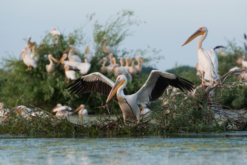 Pelicanul comun și pelicanul creț, specii iconice pentru Delta Dunării