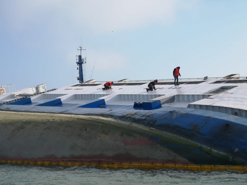 Pentru salvarea oilor, alte două decupaje în nava răsturnată în Portul Midia (galerie foto)