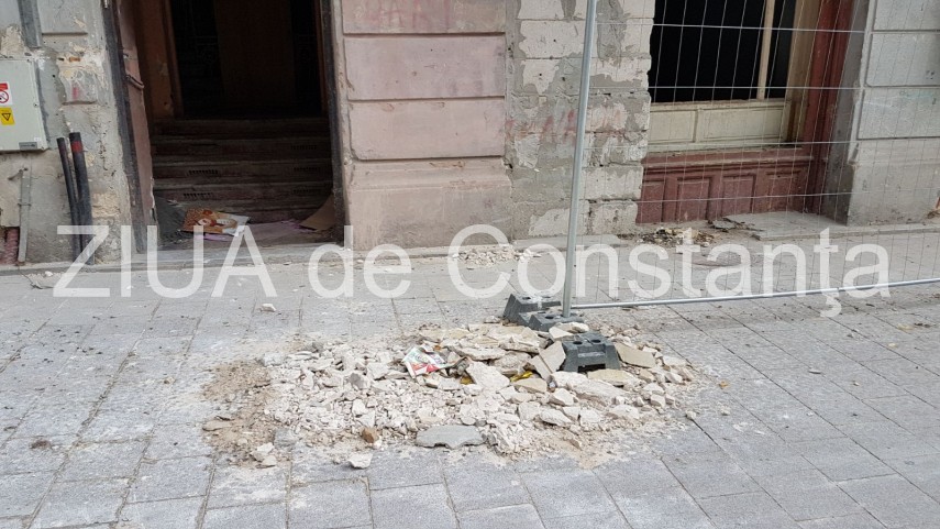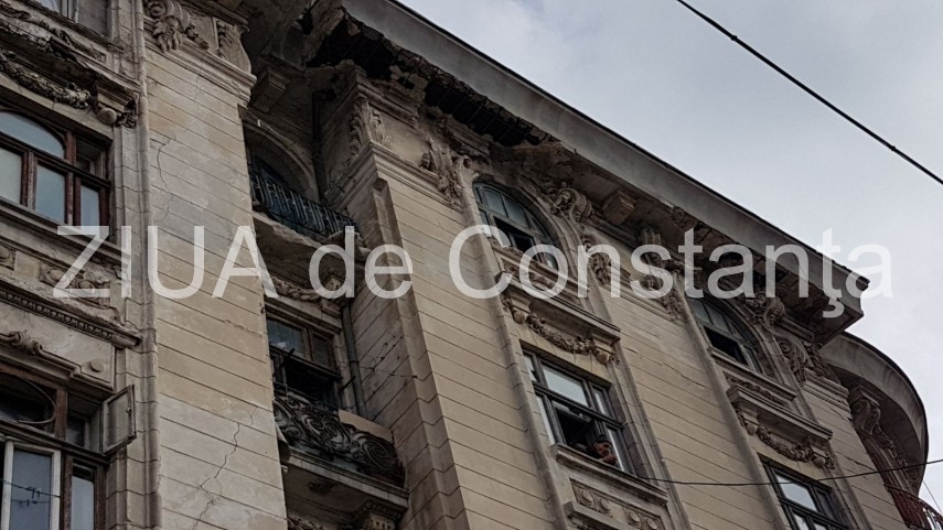 Constanţa. Pericol în Peninsulă. O bucată din balconul unei clădiri istorice s-a prăbuşit în afara zonei de protecţie (galerie foto+video)