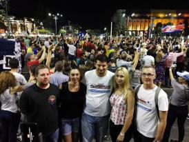 În urma investigaţiilor efectuate s-a stabilit că, în noaptea de 01/02.02.2017, în timp ce se aflau în zona Piața Victoriei, în contextul în care in zona respectiva avea loc o manifestație cu caracter pașnic la care participau aproximativ 100.000 de persoane, inculpații s-au manifestat violent, aruncând cu diverse obiecte contondente (sticle, bucăți de gheață, containere) în jandarmii aflați în exercitarea atribuțiilor de serviciu pentru asigurarea ordinii în timpul protestului, provocându-le acestora suferințe fizice.
