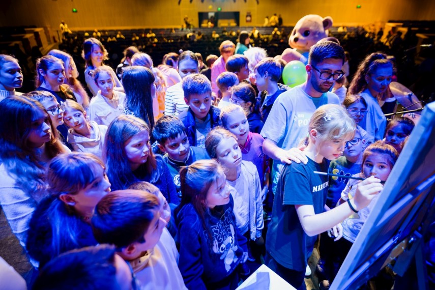 Atmosfera a fost una de sărbătoare. Sub îndrumarea pictorului George Tanasă, copiii au realizat un tablou colectiv cu tematică de toamnă și Halloween, o lucrare începută pe scenă, în lumina reflectoarelor, și continuată apoi în sală, cu implicarea publicului.