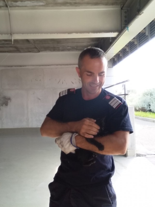 Pisică blocată într-un manșon metalic, salvată de pompierii constănțeni