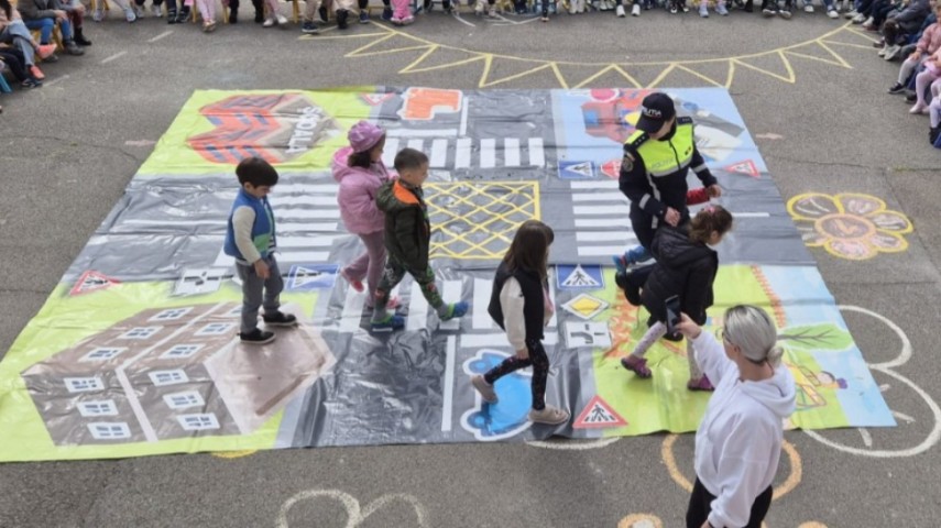 Prin intermediul unor metode interactive și adaptate vârstei copiilor, polițiștii au utilizat covorașul de educație rutieră, un instrument atractiv și eficient, pentru a le explica celor mici regulile esențiale de circulație.