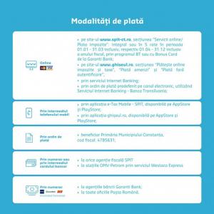 Directia Generala a Finantelor Publice Constanta (DGFP) din cadrul Agentiei Nationale de Administrare Fiscala vine in sprijinul contribuabililor sai. Conducerea DGFP Constanta a hotarat prelungirea programului cu publicul al unitatilor fiscale, in perioada 9-15 mai 2006. Programul de lucru se va mari, dupa caz, pana la primirea declaratiilor de venit ale tuturor contribuabililor prezenti in ziua respectiva la sediul unitatii fiscale. Astfel, contribuabilii, persoane fizice vor putea depune declaratiile privind veniturile realizate in anul fiscal 2005, dupa cum urmeaza: de luni pana vineri incepand cu orele 08.30 si pana la orele 19.00, iar sambata, de la 08.30 la 13.00.