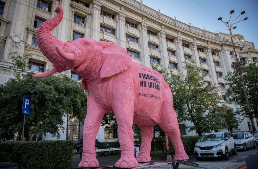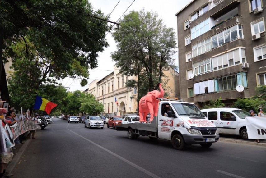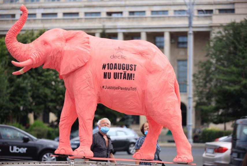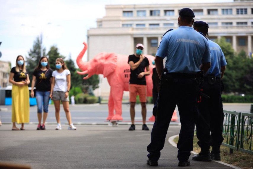 Protest Elefant vopsit în roz, plimbat prin Capitală, la doi ani de la mitingul din 10 august (galerie foto)