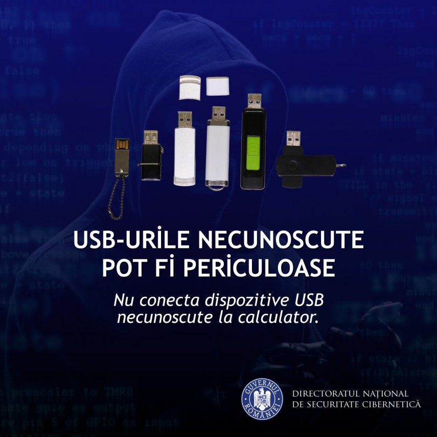 Directoratul Național de Securitate Cibernetică (DNSC) recomandă cetățenilor informații legate de stick-urile USB și cum pot acestea, infecta dispozitivele pentru furtul datelor.